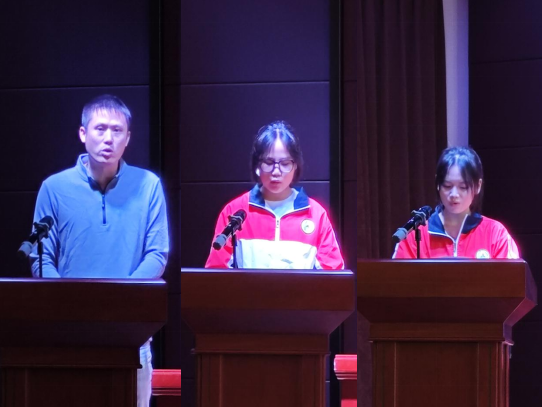 大会在庄严的国歌声中拉开序幕,全体师生肃立注目,齐唱国歌。